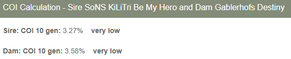 Bei den Welpen ist die Gefahr auf genetisch vererbbare Krankheiten, die rezessiv sind (bei denen beide Elterntele Träger der krankmachenden Gene sein müssen um eine Erkrankung auszulösen) äusserst gering, weil sie nur sehr weitschichtig miteinander verwandt sind und es so nur selten zur Duplikation von Genen kommen kann.